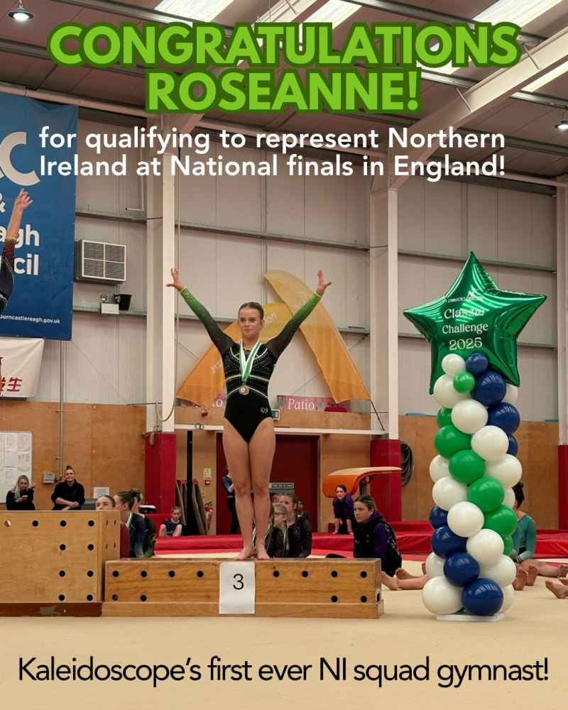 After a stellar performance at the Bronze Classic Challenge Qualifiers, Kaleidoscope gymnast Roseanne has qualified to represent NORTHERN IRELAND at National Finals in England in November ... A first for Kaleidoscope!